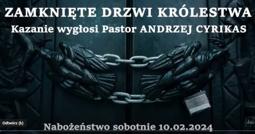 Zamknięte drzwi Królestwa (10.02.2024) – Pastor Andrzej Cyrikas: https://youtu.be/P40PIhD56qo